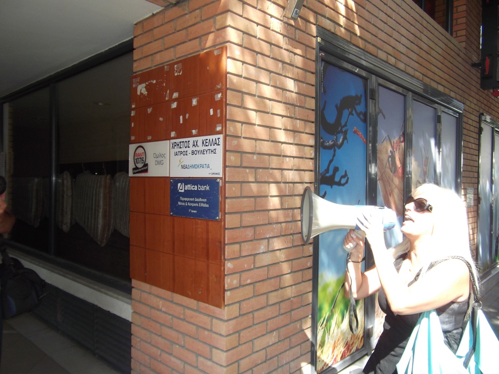 Ώρα αργότερα, έφτασαν στην είσοδο της πολυκατοικίας όπου βρίσκεται το γραφείο του βουλευτή του ΠΑΣΟΚ Φίλλιπου Σαχινίδη όπου ακούστηκαν επίσης συνθήματα και αποδοκιμασίες.