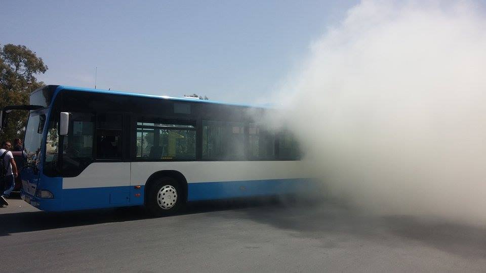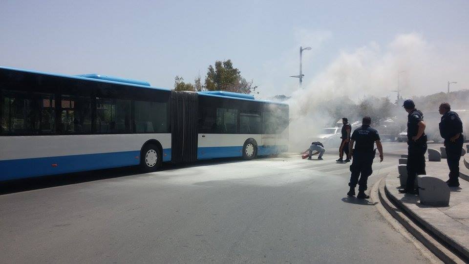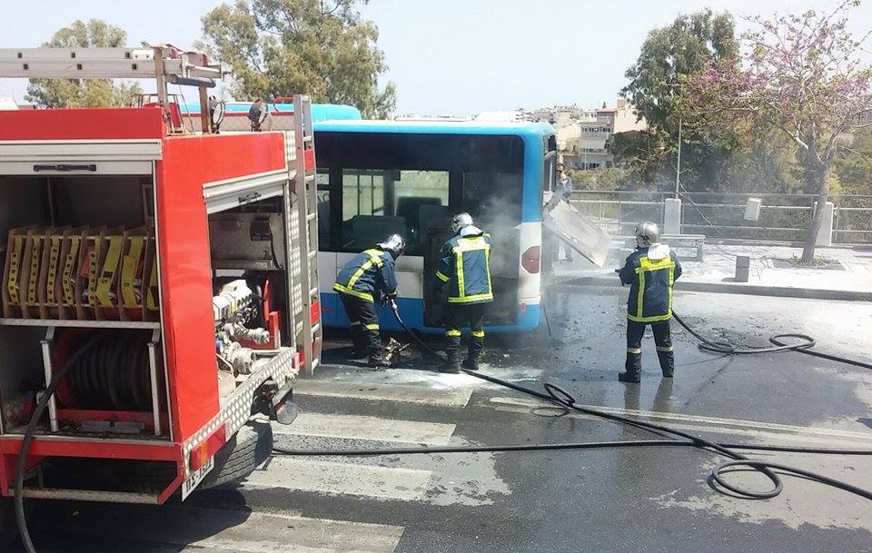 Λεωφορείο τυλίχθηκε στις φλόγες στο κέντρο του Ηρακλείου στην Κρήτη, χωρίς, ευτυχώς, να κινδυνεύσουν οι επιβάτες του.