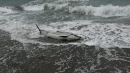 Το βίντεο ανάρτησε ο Στέλιος Λαμπρινίδης κάτοικος της Νυφίδας όπου φαίνεται ένα δελφίνι να έχει παρασυρθεί στην ακτή και να σπαρταράει μέσα στα κύματα.