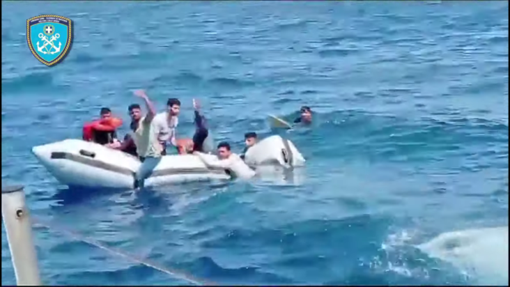 Όπως μπορείτε να δείτε στο βίντεο που έδωσε στη δημοσιότητα το Λιμενικό, η λέμβος που χρησιμοποίησαν οι μετανάστες έχει ήδη αρχίσει να βυθίζεται με κάποιους από αυτούς να είναι γραπωμένοι πάνω της, προκειμένου να μην πνιγούν, ενώ κάποια από τα αντικείμενά τους έχουν διασκορπιστεί στην θάλασσα.