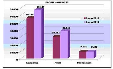 Το εννεάμηνο του 2013, σε επίπεδο επικράτειας, καθώς και στις πόλεις της Αθήνας και Θεσσαλονίκης, όπου καταγράφεται ο κύριος όγκος των κλοπών και των διαρρήξεων, στη σύγκριση με το αντίστοιχο περυσινό διάστημα, καταγράφονται σημαντικές μειώσεις, ως εξής: