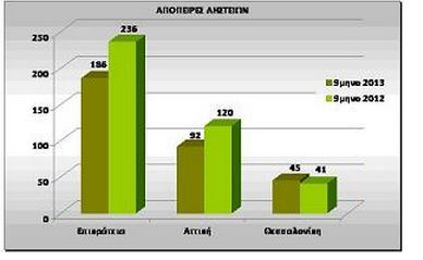 146 λιγότερες απόπειρες στην επικράτεια (323 έναντι 469).