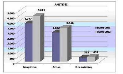573 λιγότερες στην Αττική (12.691 έναντι 13.264), ποσοστό μείωσης 4,3%.
