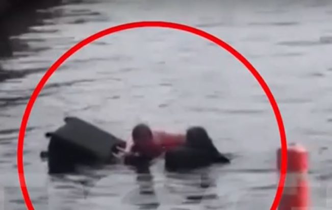 Στο βίντεο ντοκουμέντο που δημοσίευσε το Mega, διακρίνονται δύο άνδρες του λιμενικού που έχουν βουτήξει για να τη βοηθήσουν.