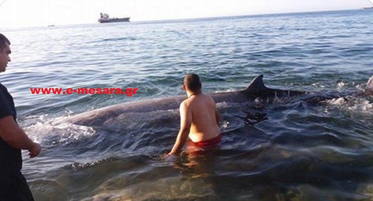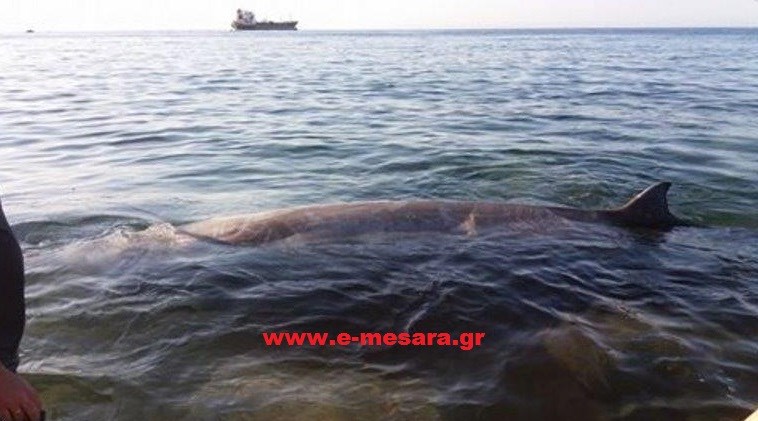 Σύμφωνα με την ιστοσελίδα e-messara.gr, η φάλαινα χτύπησε σε βράχια και αιμορραγεί.