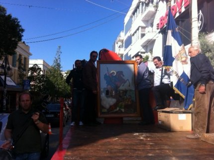 Οδηγοί φορτηγών λιτάνευσαν σήμερα στο κέντρο του Ηρακλείου στην Κρήτη, την εικόνα του Αγίου Δημητρίου. Κι αυτό γιατί είναι ο προστάτης Άγιός τους.
