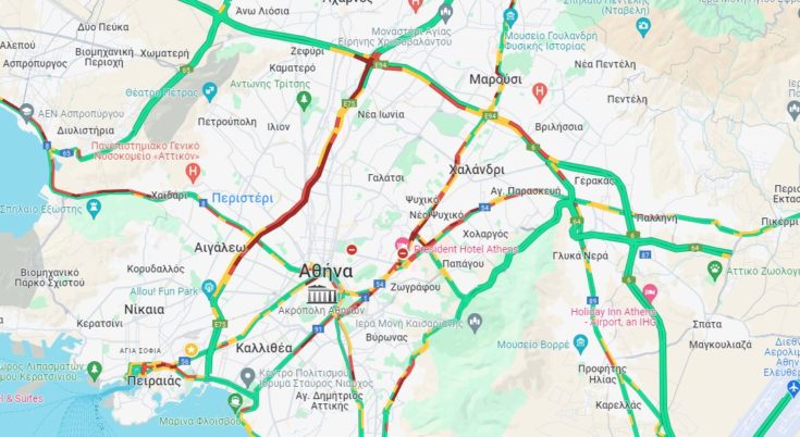 5′-10′ από κόμβο Μεταμόρφωσης μέχρι κόμβο Κηφισίας.
