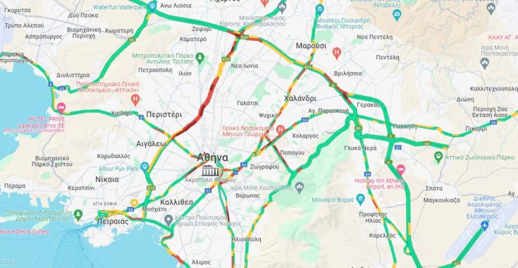Προβλήματα καταγράφονται στους δρόμους γύρω από το λιμάνι του Πειραιά, στην Λεωφόρο Ποσειδώνος στο ρεύμα προς Πειραιά και στην Περιφερειακή Καρέα προς Αθήνα.