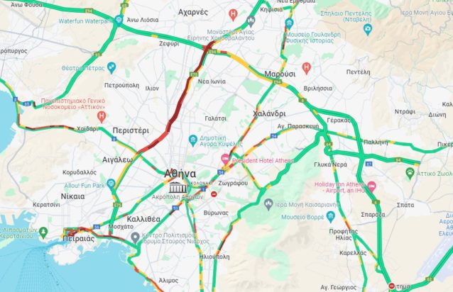 Παρασκευή σήμερα και η κίνηση «πάει τριήμερο». Στο «κόκκινο» βρίσκονται αυτή την ώρα οι έξοδοι των Εθνικών Οδών Αθηνών- Κορίνθου και Αθηνών – Λαμίας, ενώ τμηματικά αυξημένη είναι η κίνηση και στα δύο ρεύματα του Κηφισού.