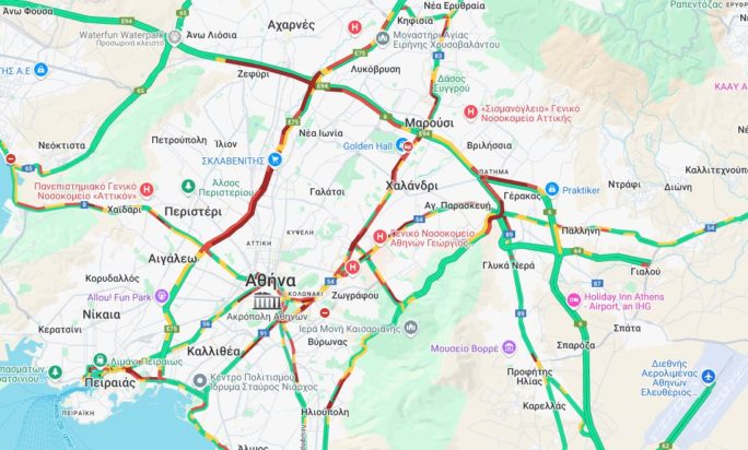 Δευτέρα σήμερα με κίνηση… παντού. Ο «χάρτης» είναι κατακόκκινος και σε πολλούς δρόμους επικρατεί το αδιαχώρητο.