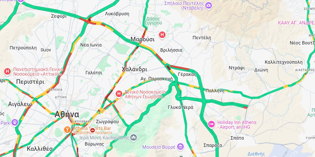 Αυξημένη είναι η κίνηση και στην Αττική Οδό, στο ύψος της Μεταμόρφωσης στο ρεύμα προς αεροδρόμιο και στον Γέρακα στο ρεύμα προς Ελευσίνα.