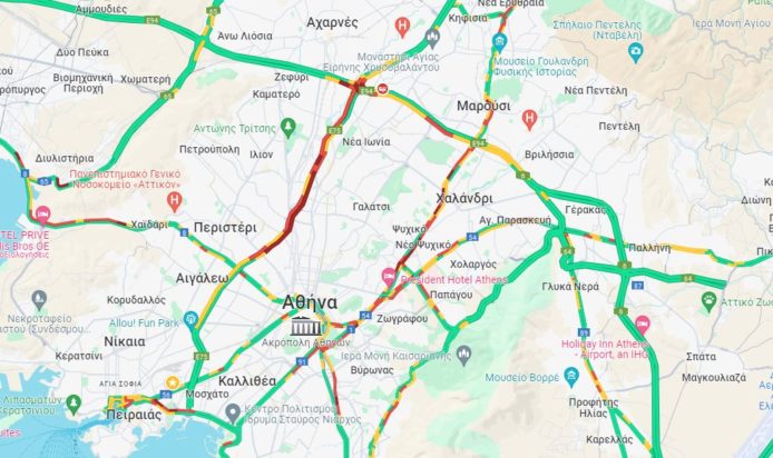 10΄-15΄από κόμβο Μεταμόρφωσης μέχρι κόμβο Κηφισίας,