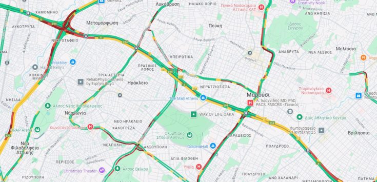 10′-15′ από κόμβο Μεταμόρφωσης μέχρι κόμβο Κηφισίας.