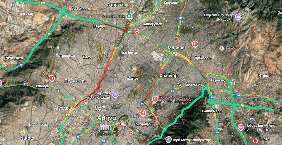 Στο ρεύμα προς Ελευσίνα, οι καθυστερήσεις φτάνουν έως και τα 10 λεπτά από τον κόμβο της Πλακεντίας μέχρι την Κηφισίας, όπως και στην έξοδο για Λαμία.