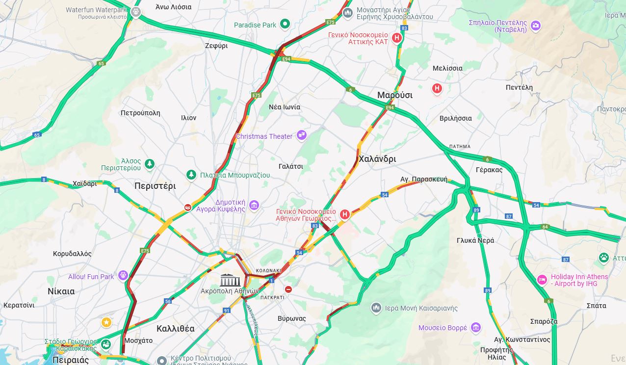 Προβλήματα αντιμετωπίζουν οι οδηγοί και στο ρεύμα καθόδου προς Πειραιά. Η κίνηση είναι στο «κόκκινο» από την Κηφισιά μέχρι και τη Ν. Φιλαδέλφεια.