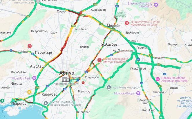Προβλήματα καταγράφοντας στην Λεωφόρο Κηφισίας, στην Βασιλίσσης Σοφίας αλλά και στην Κατεχάκη στο ρεύμα από Ηλιούπολη.