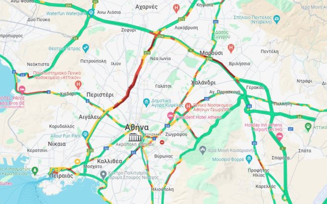 Καθυστερήσεις 5΄-10΄καταγράφονται από τον κόμβο Πλακεντίας μέχρι τον κόμβο Κηφισίας.