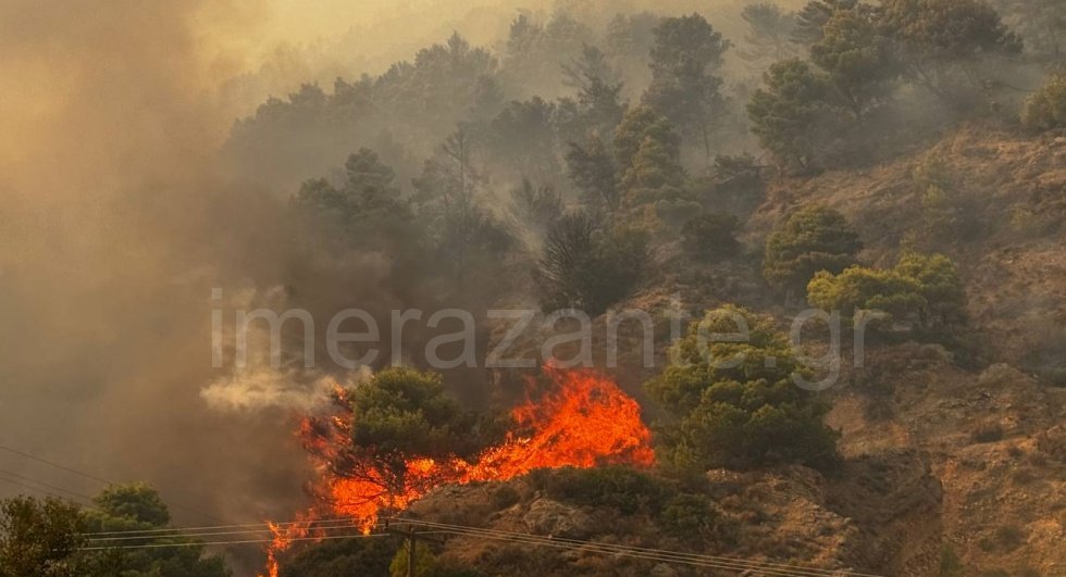 - Με αυτοθυσία οι πυροσβέστες και θέλοντες στη Ζάκυνθο προσπαθούν να σβήσουν το πύρινο μέτωπο