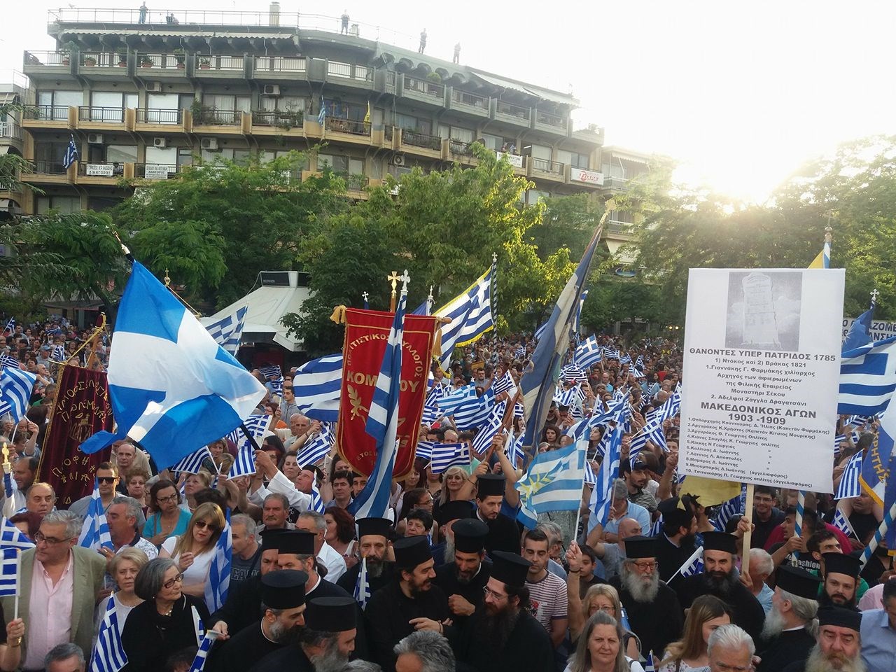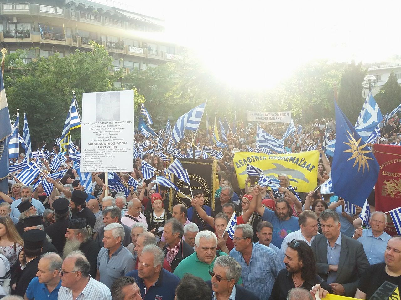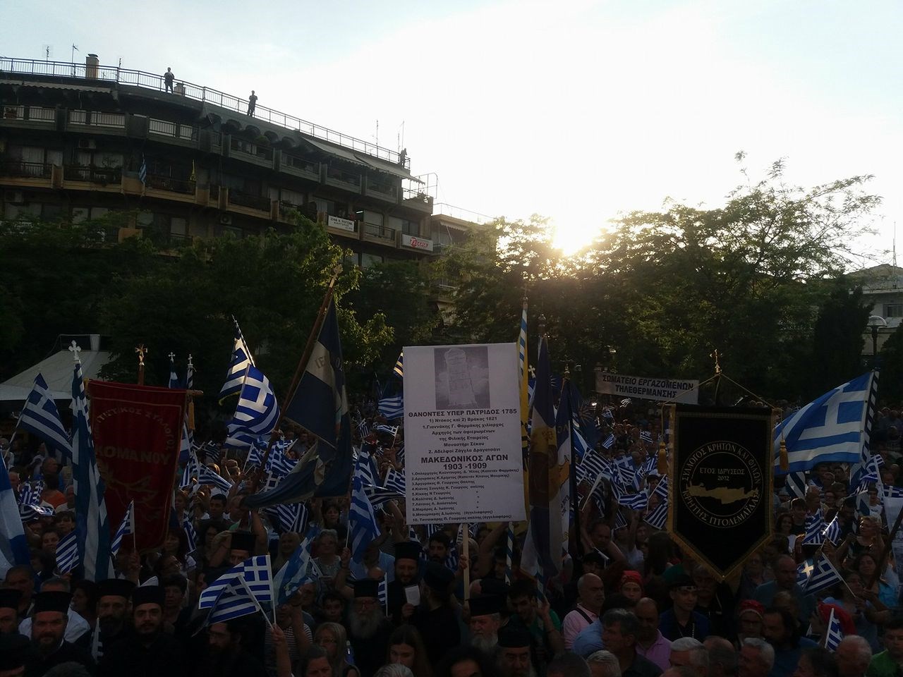 Αυτή την ώρα η συγκέντρωση εξελίσσεται ομαλά, με τους συγκεντρωμένους να κρατούν ελληνικές σημαίες, να τραγουδούν τον Εθνικό Ύμνο και να φωνάζουν συνθήματα για την ελληνικότητα της Μακεδονίας.