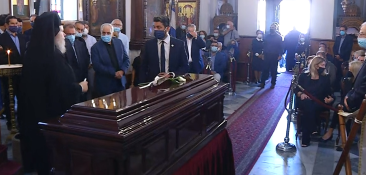Την ώρα που το φέρετρο βρισκόταν έξω από τον ναό, σύσσωμη η πολιτειακή και πολιτική ηγεσία της χώρας βρίσκονταν στα σκαλοπάτια, αποχαιρετώντας τον μεγάλο Έλληνα. Παρούσα και η οικογένειά του, πλην της κόρης του, Μαργαρίτας.