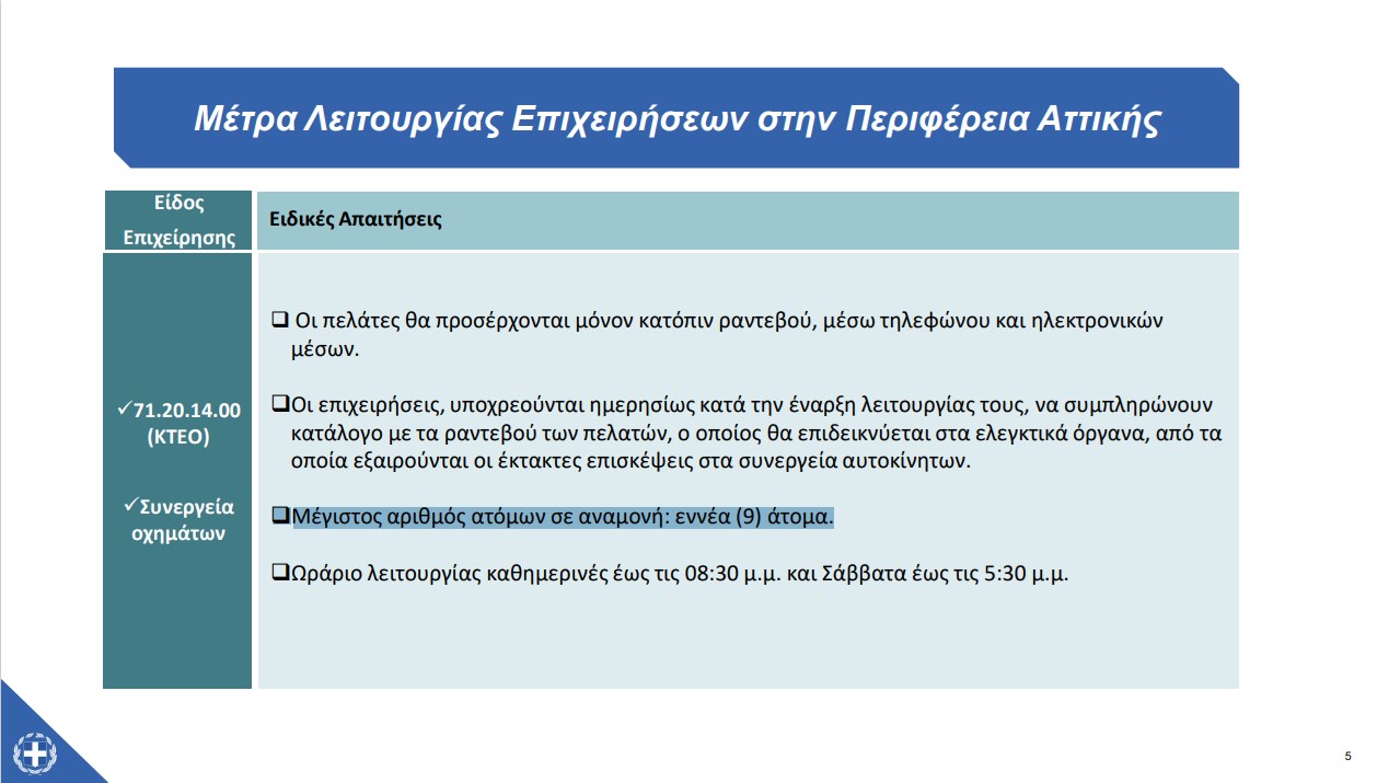 – Μέγιστος επιτρεπόμενος αριθμός πελατών εντός των καταστημάτων: ένα (1) άτομο ανά 25 τ.μ.