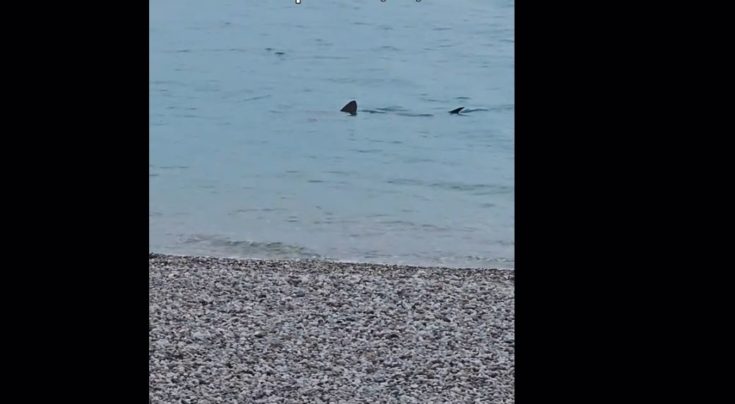Πρόκειται για καρχαρία (4-5 μέτρων) και αμέσως έγινε θέμα συζήτησης και πολλοί ήταν εκείνοι που τράβηξαν βίντεο.