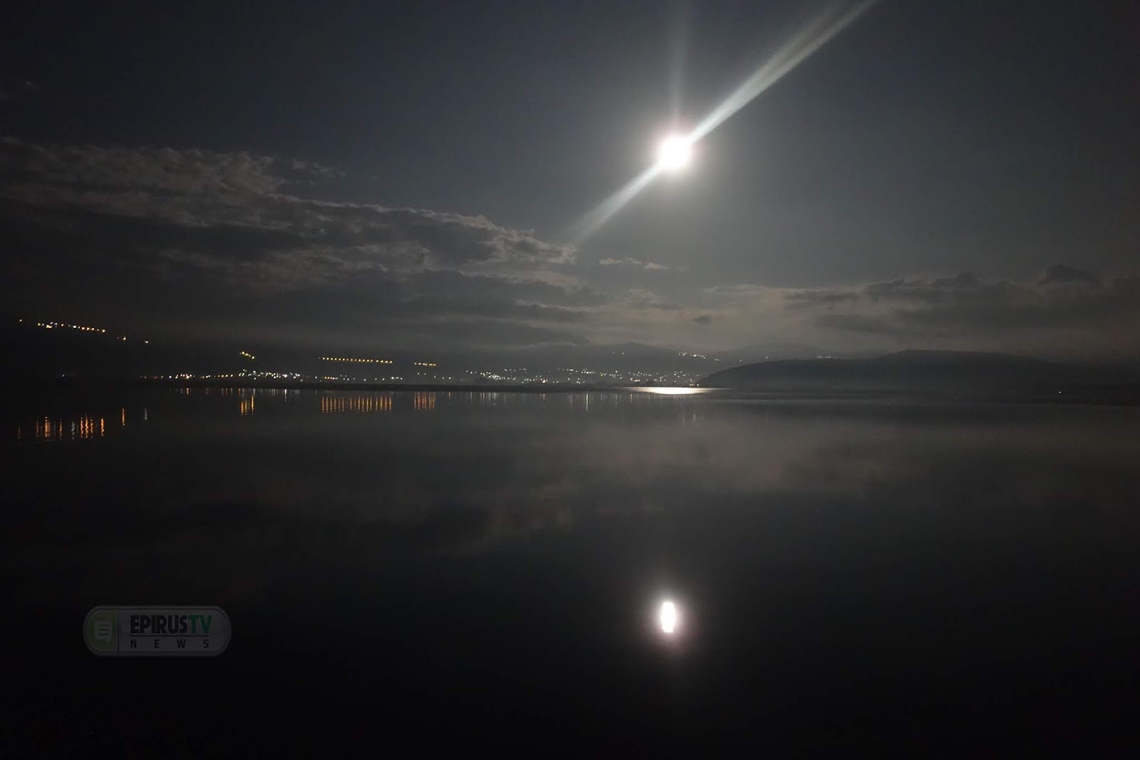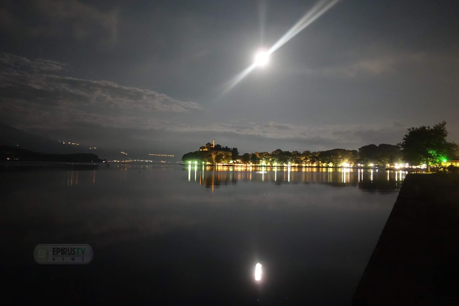 Στην παραλίμνια περιοχή, με το φως της να καθρεφτίζεται στα νερά της Παμβώτιδας το σκηνικό του κυριακάτικου βραδιού έμοιαζε βγαλμένο από καρτ ποστάλ!