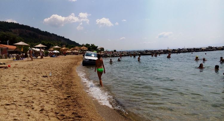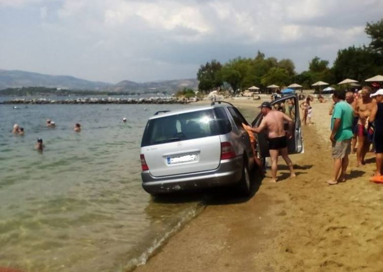 Ευτυχώς οι λουόμενοι που βρέθηκαν στην πορεία του, πρόλαβαν να απομακρυνθούν πριν τους παρασύρει το αυτοκίνητο.