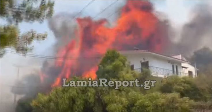 Ο δυνατός αέρας έχει φέρει τις φλόγες μέσα στον οικισμό ΟΣΜΑΕΣ στον Θεολόγο Φθιώτιδας, καθώς η φωτιά μαίνεται και καίγονται σπίτια. Η επιχείρηση εκκένωσης βρίσκεται σε εξέλιξη, ενώ οι κάτοικοι κάνουν λόγο για εμπρησμό και τονίζουν ότι είναι η πέμπτη πυρκαγιά που εκδηλώνεται μέσα σε λίγες ημέρες. Τις προηγούμενες φωτιές πρόλαβαν και τις έσβησαν πριν πάρουν μεγάλες διαστάσεις. Όπως φαίνεται στο βίντεο μέσα σε λίγα δευτερόλεπτα ένα τεράστιο δέντρο που βρίσκεται δίπλα σε σπίτι γίνεται παρανάλωμα του πυρός.