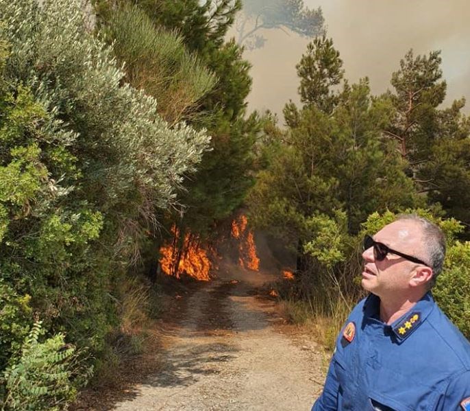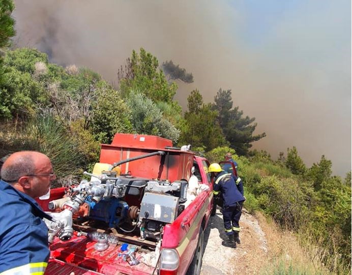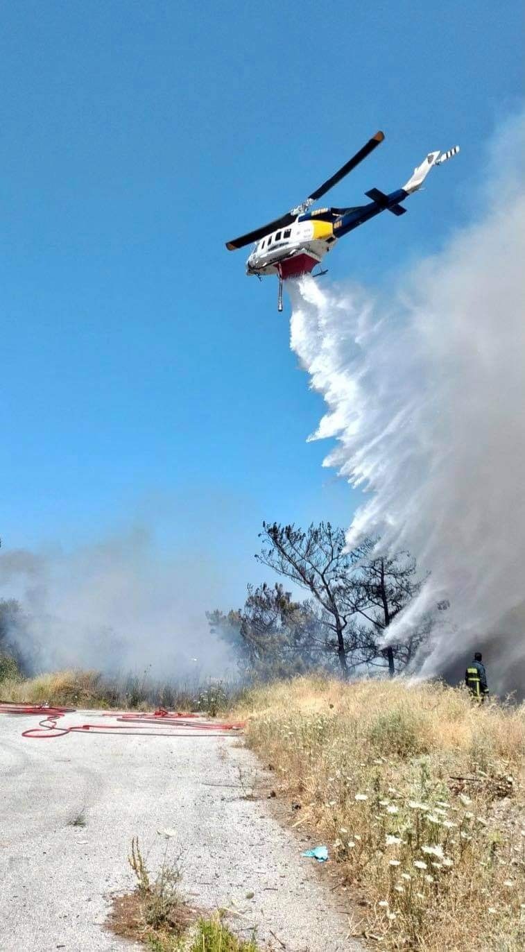 Η πυρκαγιά, που ξέσπασε το μεσημέρι της Πέμπτης, καίει δασική έκταση και βρίσκεται σε εξέλιξη μεγάλη επιχείρηση για τον περιορισμό του πύρινου μετώπου όσο το δυνατόν πιο γρήγορα. Να σημειωθεί πως αυτή τη στιγμή στη μάχη για την κατάσβεση της φωτιάς συμμετέχουν 37 πυροσβέστες με μία ομάδα πεζοπόρου τμήματος και εθελοντές πυροσβέστες, με 15 οχήματα και υδροφόρες των ΟΤΑ. Παράλληλα επιχειρούν και εναέρια μέσα. Συγκεκριμένα, ρίψεις νερού πραγματοποιούν τρία ελικόπτερα και τρία αεροσκάφη (2 CL415 KAI TO BERIEV-200).