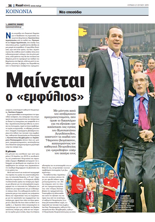 Η πρωτόδικη δικαίωση, πριν από ένα χρόνο, του Κωνσταντίνου Αγγελόπουλου δε στάθηκε ικανή να βάλει τέλος στον ενδοοικογενειακό «πόλεμο» που όχι μόνο μαίνεται αλλά φαίνεται πως θα έχει συνέχεια και διάρκεια μετά την προσφυγή των παιδιών του βιομήχανου στο Εφετείο αλλά και την κατάθεση μήνυσης εις βάρος του διορισθέντος από το δικαστήριο ανεξάρτητου πραγματογνώμονα, Αναπληρωτή Καθηγητή Νευρολογίας, Νικολάου Σκαρμέα. Διαβάστε αναλυτικά το δημοσίευμα της Realnews