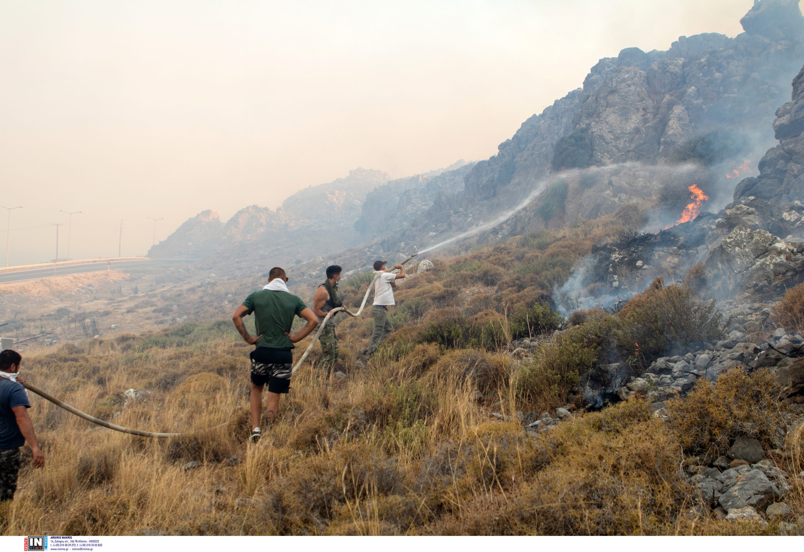 Στην πυρκαγιά της Ρόδου, οι πυροσβέστες πάλευαν όλο το βράδυ με τις αναζοπυρώσεις ανάμεσα σε Απόλλωνα και Πλατάνια, ενώ υπάρχουν διάσπαρτες εστίες ανατολικά προς Μάλωνα και Μασάρη. Στις επιχειρήσεις κατάσβεσης συμμετέχουν 266 πυροσβέστες, 55 οχήματα και 16 ομάδες πεζοπόρων τμημάτων, ενώ από αέρος ρίψεις νερού πραγματοποιούν τρία ελικόπτερα και τέσσερα αεροσκάφη.