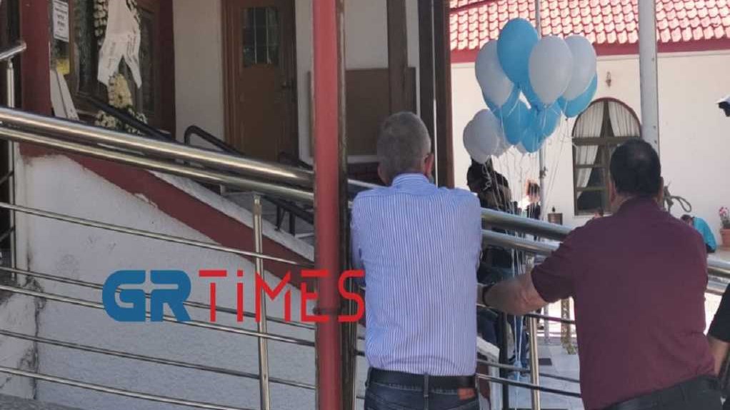 Λευκά και μπλε μπαλόνια βρίσκονται στα σκαλιά της εκκλησίας, ενώ μοιράζουν και λευκές μπομπονιέρες. Ο ιερέας ξεκίνησε τον επικήδειο με τα εξής λόγια: “για πού το έβαλες καρδιά μου με ανοιχτά πανιά”, λέγοντας ότι ο μικρός Γιωργάκης που πάντα χαμογελούσε, άφησε τα παιχνίδια του εδώ και θα παίζει με τα παιχνίδια του ουρανού.