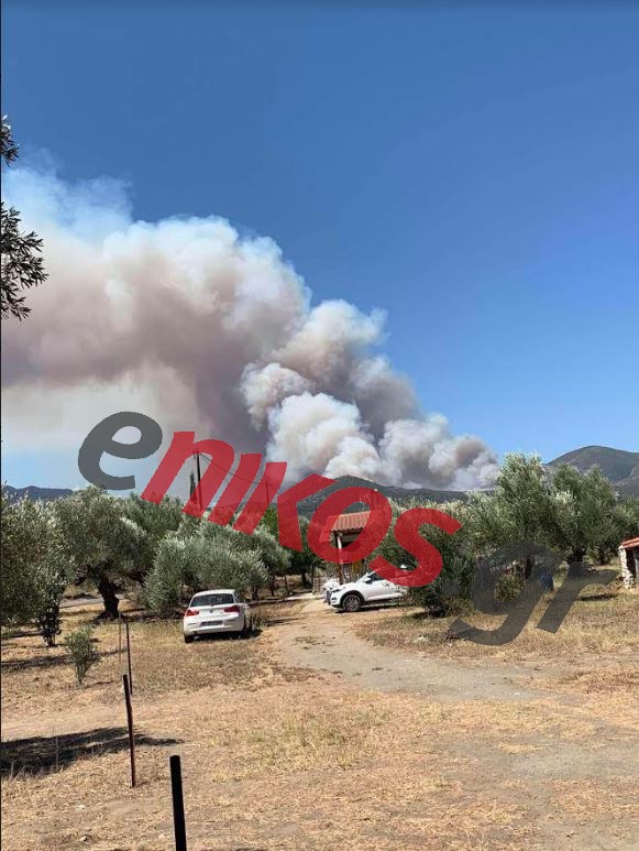 Στις φωτογραφίες που έστειλε αναγνώστης του enikos.gr από τον οικισμό Χωσιάρι, φαίνεται ο πυκνός καπνός που έχει καλύψει τον ουρανό.