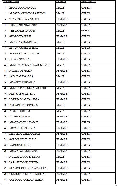 Οι διασωθέντες από το πλοίο «CRUISE EUROPA» είναι οι εξής: