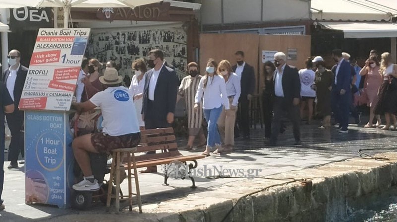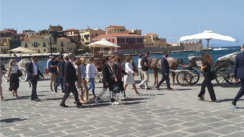 Στη συνέχεια, η Μαρέβα Μητσοτάκη ξενάγησε τη σύζυγο του Μάικ Πομπέο στο ενετικό λιμάνι των Χανίων. Σύμφωνα με το flashnews.gr, οι δυο κυρίες μαζί και με την υπουργό Πολιτισμού, Λίνα Μενδώνη, έκαναν βόλτα κατά μήκος του λιμενοβραχίονα απολαμβάνοντας τη θέα και τον καλό καιρό. Στη συνέχεια κατευθύνθηκαν σε γνωστό εστιατόριο στο λιμάνι, προκειμένου η κυρία Μητσοτάκη να παραθέσει γεύμα με εκλεκτά πιάτα στην Σούζαν Πομπέο. Η επίσκεψη και το γεύμα στο λιμάνι γίνεται κάτω από αυστηρά μέτρα ασφαλείας.