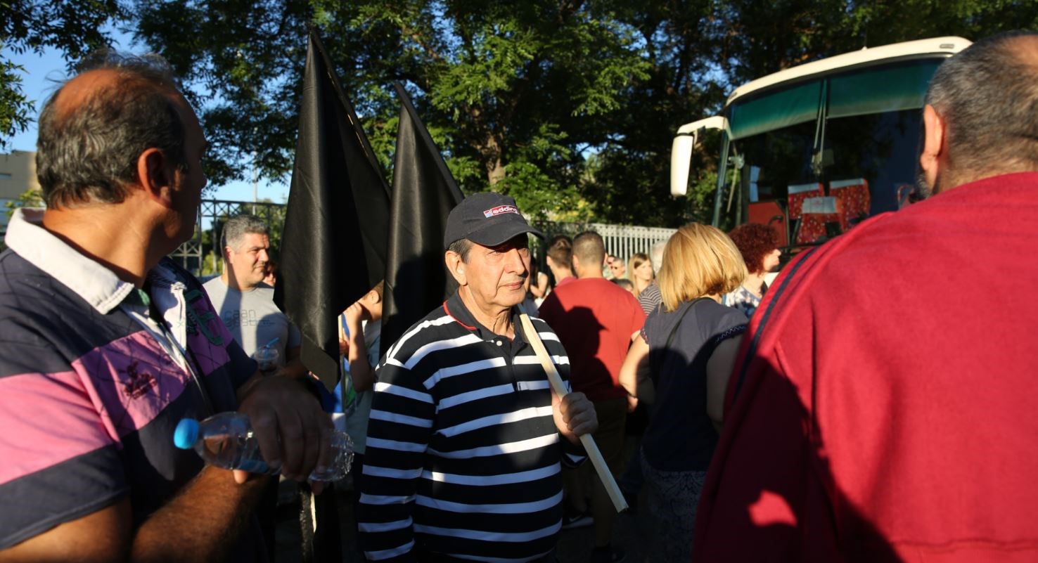 Επίσης, κρατούν ένα μεγάλο πανό που γράφει «Διεκδικούμε, απαιτούμε άμεση λύση στο πρόβλημα. Υπομονή τέλος».