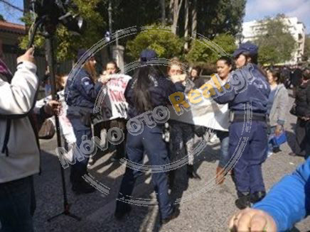 Αρχικά μπροστά τους είχαν παραταχθεί γυναίκες αστυνομικοί ωστόσο στη συνέχεια στο σημείο έφτασε και μία διμοιρία των ΜΑΤ με αποτέλεσμα τα πνεύματα να οξυνθούν.