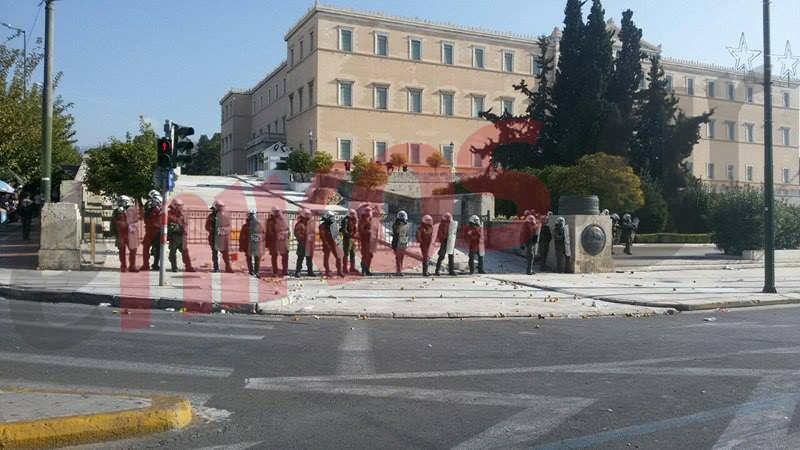 Ισχυρές δυνάμεις των ΜΑΤ έχουν παραταχθεί έξω από τη Βουλή, όπου βρίσκονται συγκεντρωμένοι οι αγρότες. Υπενθυμίζεται ότι πριν από λίγο σημειώθηκαν επεισόδια μεταξύ των ΜΑΤ και διαδηλωτών αγροτών.