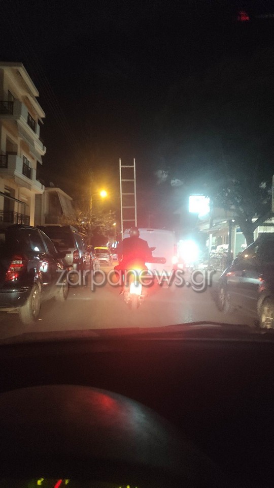 Σύμφωνα με το zarpanews.gr, ο ασυνείδητος οδηγός πέρασε από την οδό Εφέδρων Πολεμιστών στα Χανιά, κουβαλώντας σκάλα με το μηχανάκι.