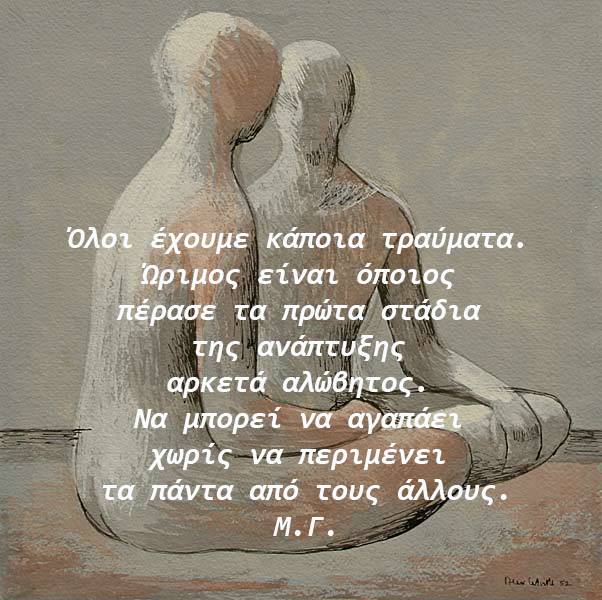 Σε συνέντευξή του στην εφημερίδα Lifo είχε πει: “Τα προβλήματα της “αγίας ελληνικής οικογένειας” ξεκινούν από την υποβάθμιση της γυναίκας. Παλιότερα οι άνδρες την έδερναν, την υποτιμούσαν ή την απατούσαν. Ήταν υποτακτική και δεν είχε ανεξαρτησία. Έτσι, η μητέρα γινόταν προβληματική. Γι’ αυτό βλέπουμε πολλούς νέους, ακόμα και σε μεγάλη ηλικία, να μένουν με τη μητέρα τους. Είναι ο προστάτης-γιος. Ο γάμος είναι μία από τις σημαντικότερες αιτίες της χρόνιας κατάθλιψης. Το 80% των ζευγαριών στην Ελλάδα δεν τα πάνε καλά, το 50% χωρίζουν, το 30% δεν χωρίζουν για κοινωνικο-οικονομικούς λόγους, το 20% είναι σε σχετικά καλό επίπεδο και μόνο το 5%-10% είναι πραγματικά ευτυχισμένοι. Επομένως, η πλειονότητα των σχέσεων είναι ψεύτικες και βολεμένες. Δεν βρήκαν ποτέ το ιδανικό”.