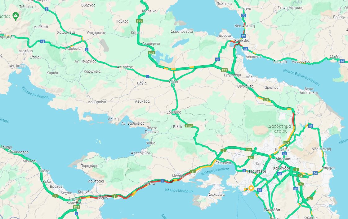 Ιδιαίτερη αυξημένη είναι η κίνηση των οχημάτων στην εθνική οδό Αθηνών-Κορίνθου, ενώ καθυστερήσεις σημειώνονται και στην εθνική οδό Αθηνών-Λαμίας.