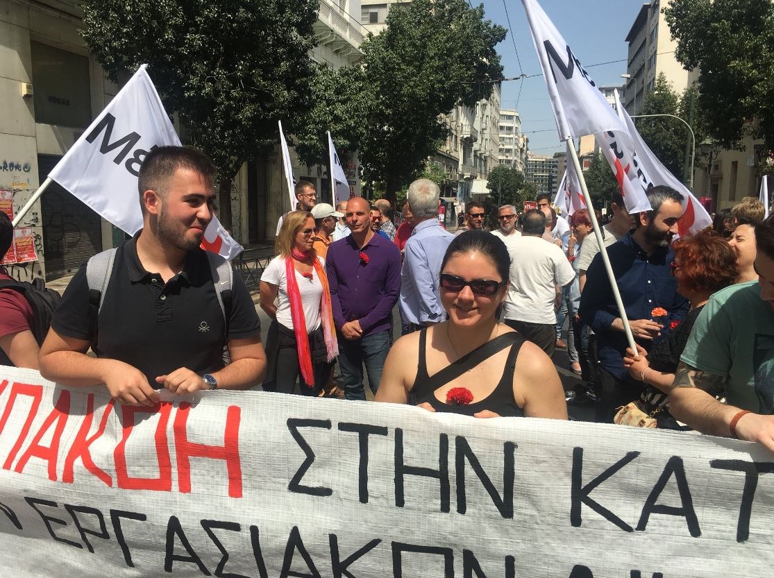 Με γαρύφαλλο στο πέτο ο Βαρουφάκης στην πορεία της Πρωτομαγιάς – Στο πλευρό του η Δανάη Στράτου – ΦΩΤΟ