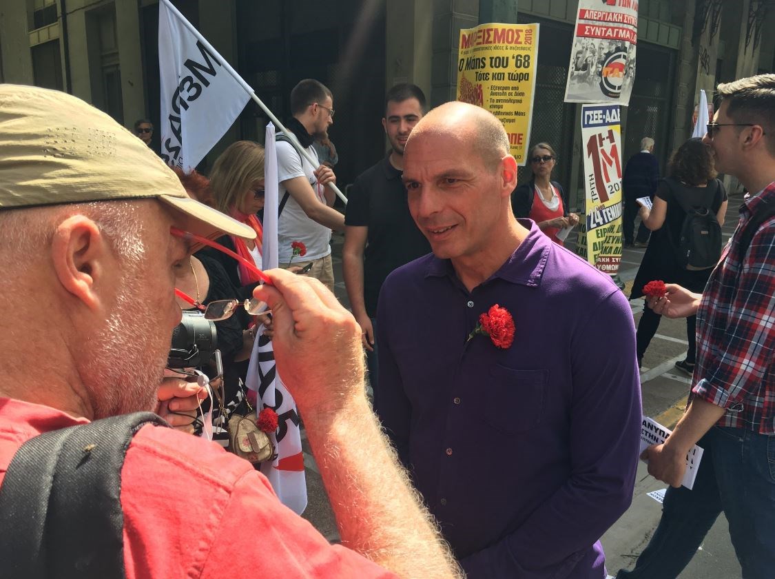 Στη συγκέντρωση που πραγματοποίησε στην Πλατεία Κλαυθμώνος η ΓΣΕΕ-ΑΔΕΔΥ, στο πλαίσιο των εορτασμών για την εργατική Πρωτομαγιά, βρέθηκε και ο Γιάνης Βαρουφάκης. Ο πρώην υπουργός Οικονομικών ήταν επικεφαλής του μπλοκ του νεοσύστατου κόμματός του “ΜεΡΑ25”.