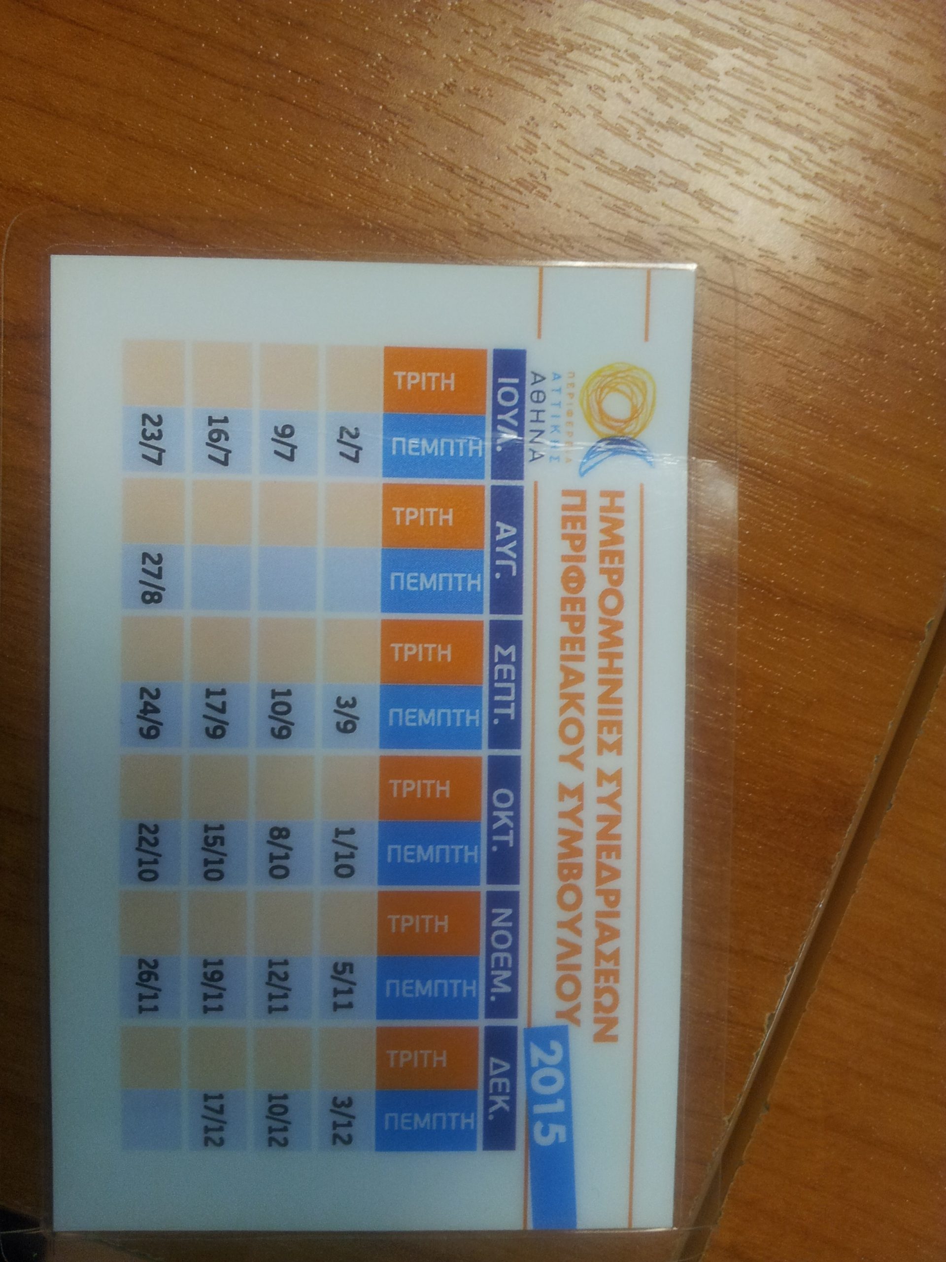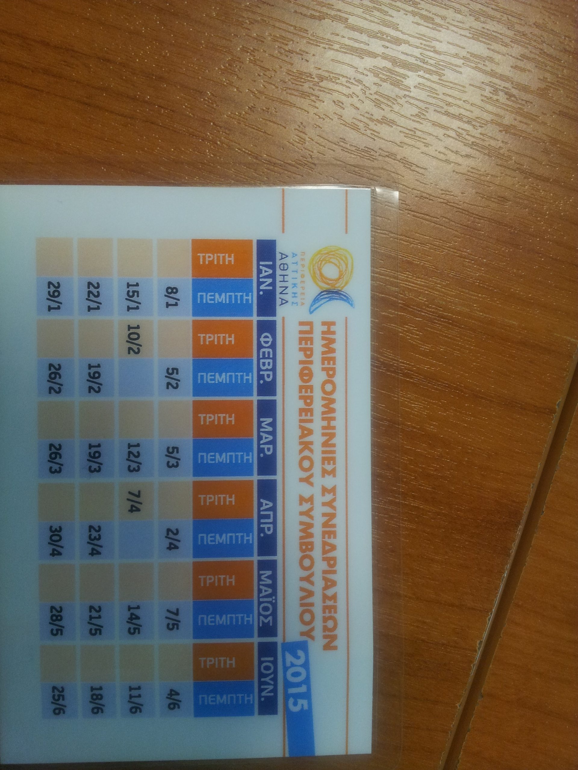 Πρόκειται για μίνι καλεντάρια με τις ημερομηνίες των συνεδριάσεων, τα οποία θα έχουν..ανά χείρας οι Περιφερειακοί Σύμβουλοι, προκειμένου να τα συμβουλεύονται και να κάνουν τον προγραμματισμό τους.