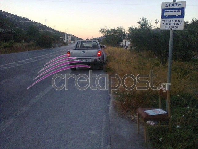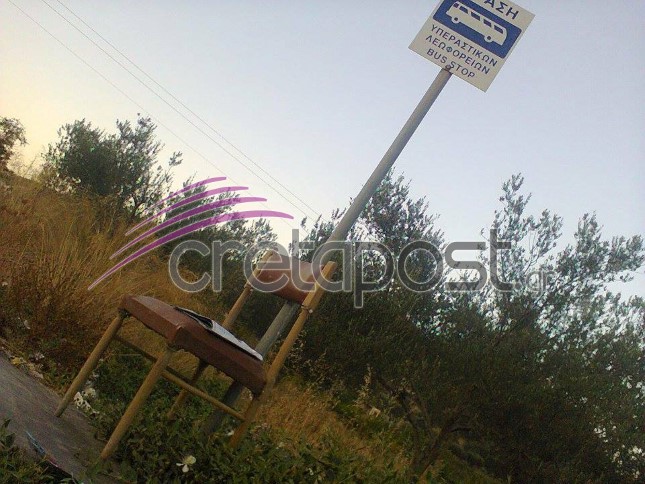 Έτσι, οι κάτοικοι αποφάσισαν να μεταφέρουν εκεί μια καρέκλα, για να μην περιμένουν όρθιοι το υπεραστικό λεωφορείο που θα τους μεταφέρει στο Ηράκλειο.