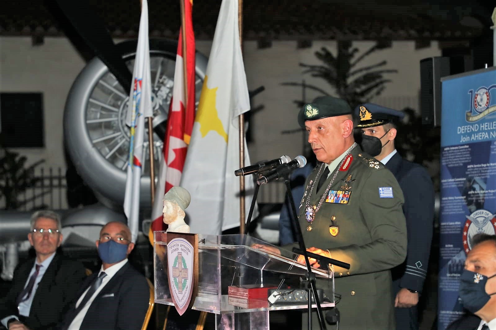 Στην εκδήλωση που έλαβε χώρα στο Πολεμικό Μουσείο Αθηνών, παραβρέθηκαν επίσης ο Αρχηγός ΓΕΑ Αντιπτέραρχος (Ι) Γεώργιος Μπλιούμης, ο Αρχηγός ΓΕΣ Αντιστράτηγος Χαράλαμπος Λαλούσης, ο Αρχηγός ΓΕΝ Αντιναύαρχος Στυλιανός Πετράκης ΠΝ, ο Υπαρχηγός του ΓΕΕΘΑ Αντιναύαρχος Ιωάννης Δρυμούσης ΠΝ, ο Διοικητής της Διοίκησης Ειδικού Πολέμου του ΓΕΕΘΑ Αντιστράτηγος Γεώργιος Τσιτσικώστας, ο Επιτελάρχης του ΓΕΕΘΑ Αντιπτέραρχος (Ι) Γεώργιος Φασούλας, οι Διευθυντές Κλάδων και Διευθύνσεων του ΓΕΕΘΑ, καθώς και τα μέλη του Διοικητικού Συμβουλίου της AHEPA.