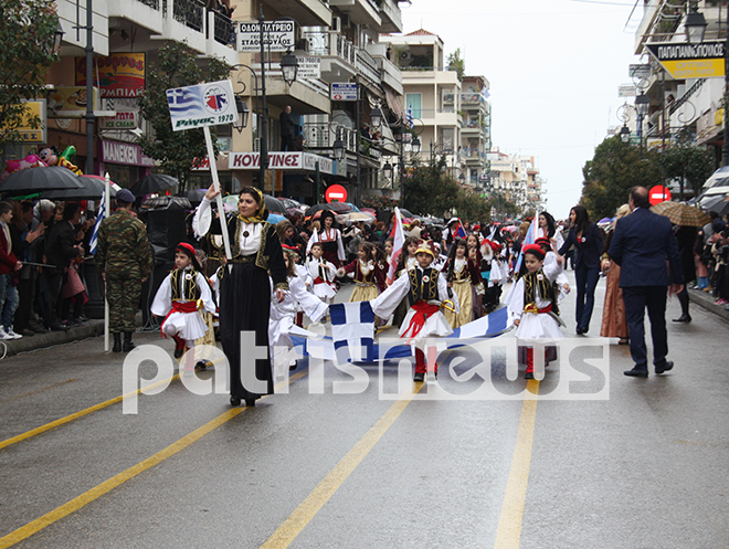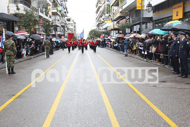 Τελικά ο καιρός βελτιώθηκε, και η παρέλαση διεξήχθη κανονικά. Οι πολίτες που βρέθηκαν στα πεζοδρόμια της οδού Μανωλοπούλου κρατώντας ομπρέλες και αδιάβροχα, απαθανάτισαν αρκετά στιγμιότυπα από τις παρελάσεις των μαθητών, ενώ το παρατεταμένο χειροκρότημα κέρδισαν οι λιλιπούτειοι μαθητές των νηπιαγωγείων!