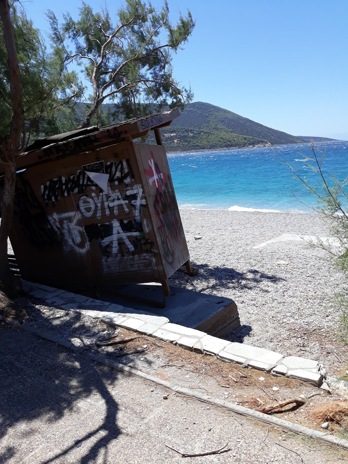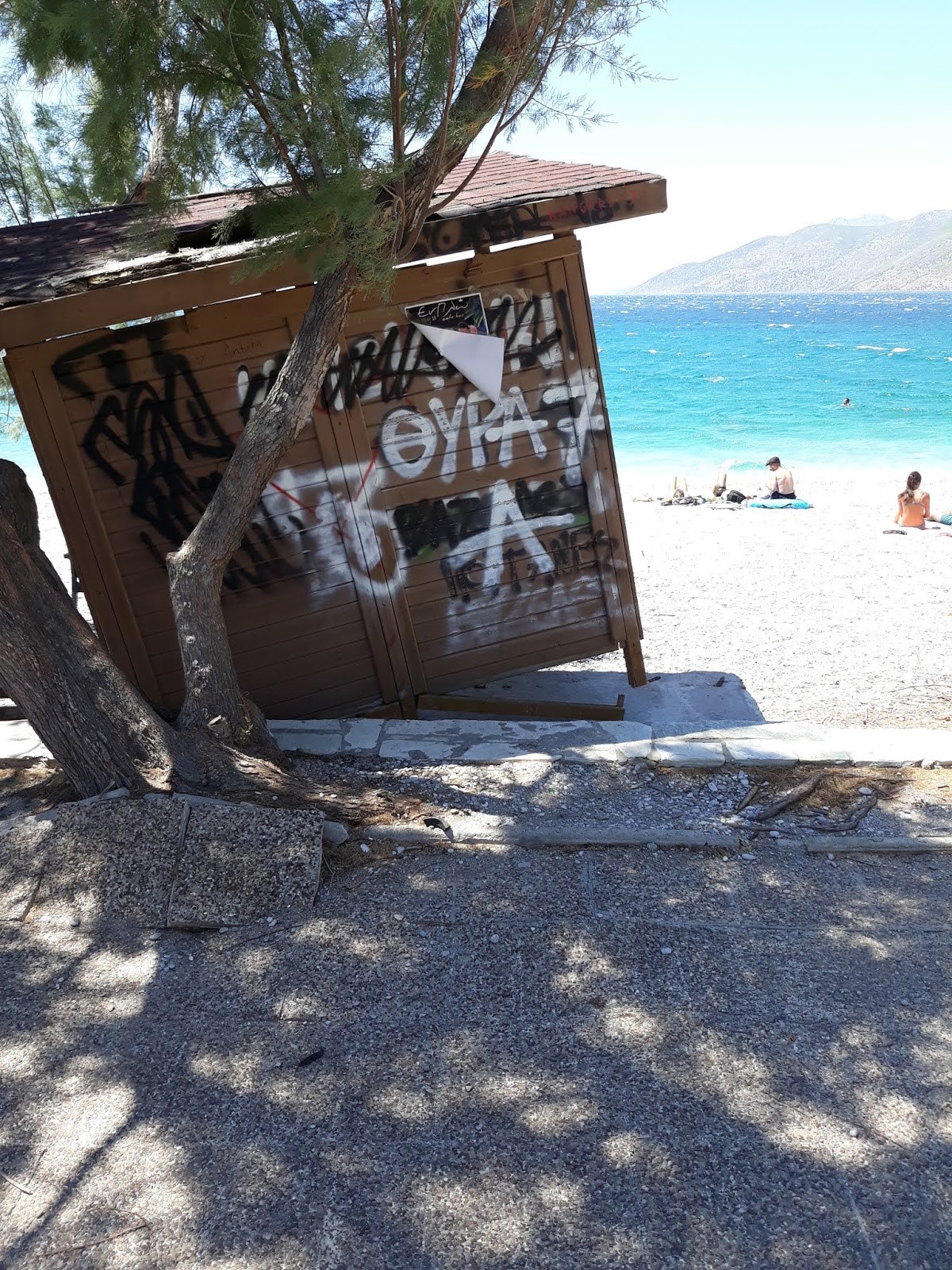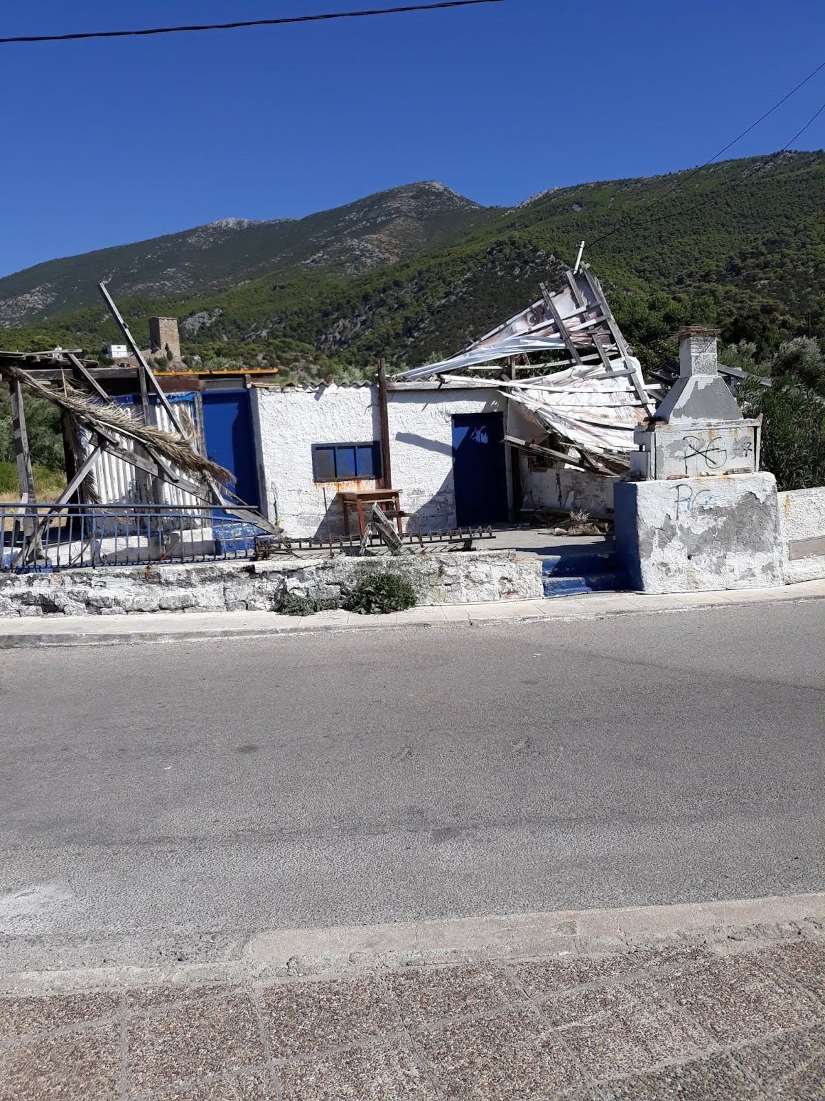 Οι δυνατοί άνεμοι κατάφεραν να ξεριζώσουν τα ήδη απο ότι φαίνεται ετοιμόρροπα αποδυτήρια για τους λουόμενους στο Πόρτο Γερμενό.