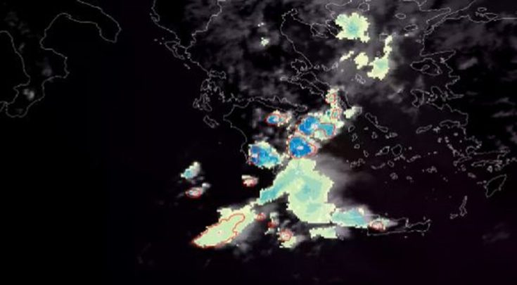 Μετεωρολογικός δορυφόρος κατέγραψε την εξέλιξη της κακοκαιρίας το τελευταίο 8ωρο στη χώρα μας. Όπως επισημαίνει ο διευθυντής της ΕΜΥ, Θοδωρής Κολυδάς, που δημοσίευσε και τις σχετικές εικόνες στο twitter, οι καταιγίδες ήταν πολύ έντονες στην Πελοπόννησο.